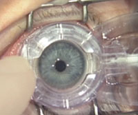 Dazu wird zunächst ein Saugring auf das Auge gesetzt (Abbildung r.o.).